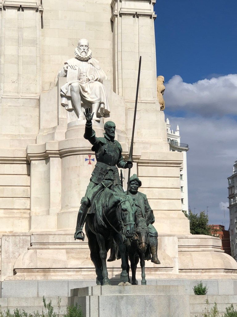 Madrid – Cervantes above Don Quixote & Sancho Panza
