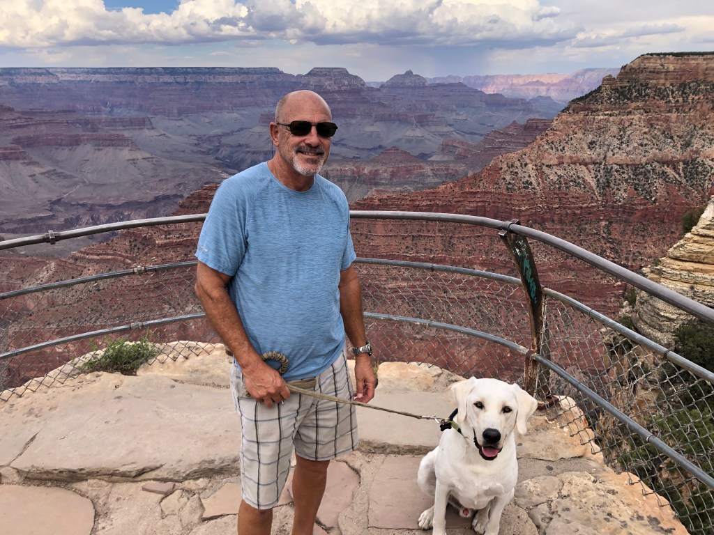 doesn’t have shooting stars.PHASE 6, Prime Rib and Overlooks: Kelly, after we’d visited Garden of the Gods in Colorado, and Arches and Zion in Utah: “Those were so great, do we really need to go to the Grand Canyon?” Which is sort of like saying, “That prime rib was so tasty last night, do we really ever need to eat dinner again?” (A better question might have been, “Missouri was so impressive, do we need to do Kansas?”) Anyway, we did visit the Grand Canyon, where Pasha was welcomed at every scenic overlook on the south side. #worthit