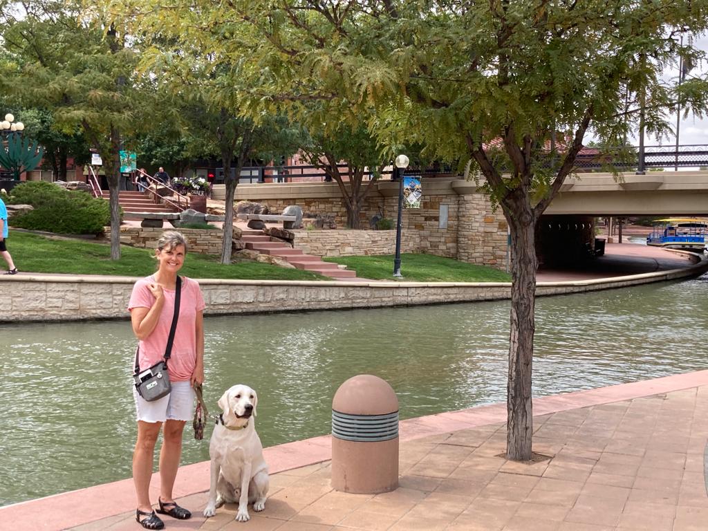 We made a game-day decision and adjusted our course away from Santa Fe and charted a more direct route that will eventually lead us to Arches National Park in Utah. Happily, that landed us in Pueblo, Colorado for the afternoon and evening. The drive across Kansas was mostly flat with some rolling hills. We kept wondering when we’d finally see the mountains! Finally we saw them, and – again, hearkening back to the pioneers – we imagined how excited they must have been. We really enjoyed the Pueblo River Walk on the Arkansas River. Along a pretty nature, and art-strewn walk path it showcased the long history of the area, everyone was nice, and the beer on the outside dog-friendly pub patio was cold. The Arkansas River in Pueblo marked the border between Mexico and the U.S. up to 1848.